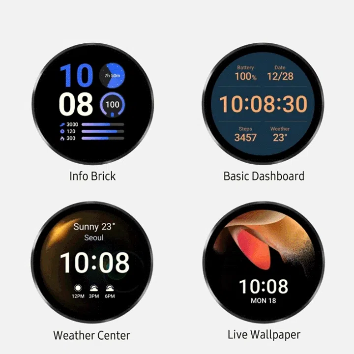 A smartwatch doesn’t just tell the time, and Samsung knows that. The update sees four new watch faces, offering your preferred metrics and complications at a glance. For example, the Info Brick watch face puts your fitness metrics into focus, while the others offer the weather forecast in a single glance.