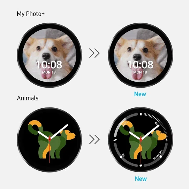 The My Photo+ watch face can now support moving GIFs, instead of only static photos. Finally, the Animals watch face lets users mix and match their preferred metrics, so users can pick between step count, battery life, reminders, and more - instead of only telling time.