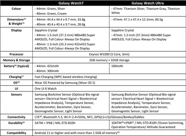Both Galaxy Watch Ultra and Galaxy Watch7 actually have the same main hardware specifications, which includes the new chipset and BioActive sensor updates. If you look at the specification table below, both watches also have the same display size and resolution, same memory, same storage, and same GPS capabilities.