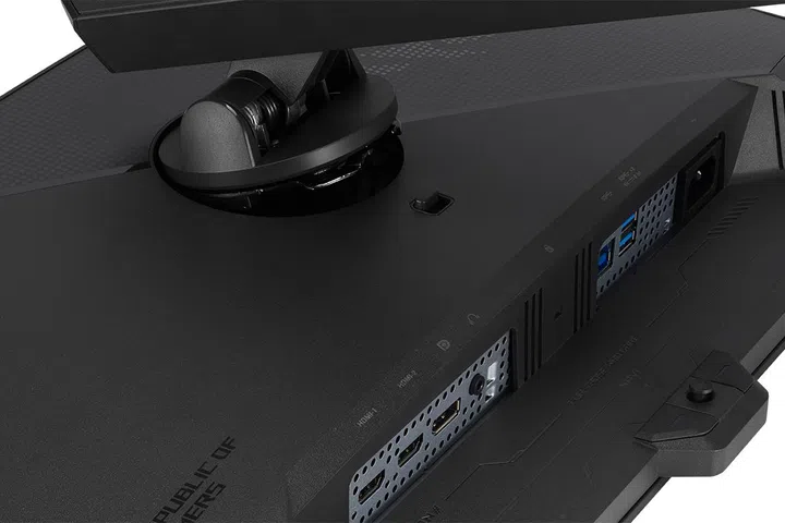 The new Strix OLED features USB ports on the back, as well as HDMI 2.1 and DisplayPort 1.4. Image: ASUS.