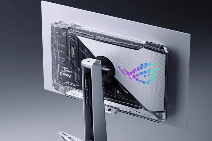 Taking a closer look at the monitors, the 27-inch Swift OLED PG27AQWP-W steals the spotlight, featuring a unique translucent back design (congratulations to transparent tech enjoyers), as well as DisplayPort 2.1a and HDMI 2.1 support. It also has a GtG (gray-to-gray) response time of 0.03ms, but perhaps the star feature of the new Swift OLED is in Dual Mode, which enables the monitor to have two resolution-refresh rate combinations. Past ROG monitors have included this feature, but with the Swift OLED, you can opt for 1440p at 540Hz, or 720p at 720Hz. (Ed’s note: I had to re-read this twice..720p in today’s age?)