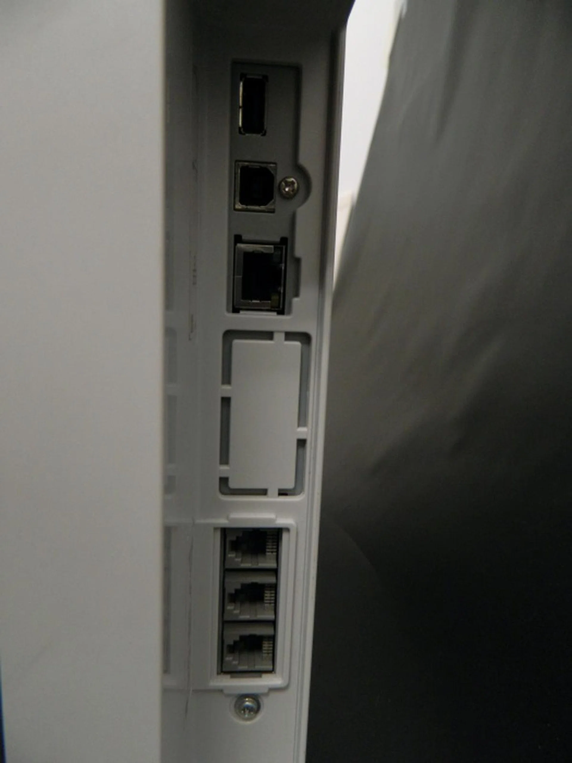 You'll find just one gigabit Ethernet port and an RJ-11 fax port at the rear while the front has a USB 2.0 port.