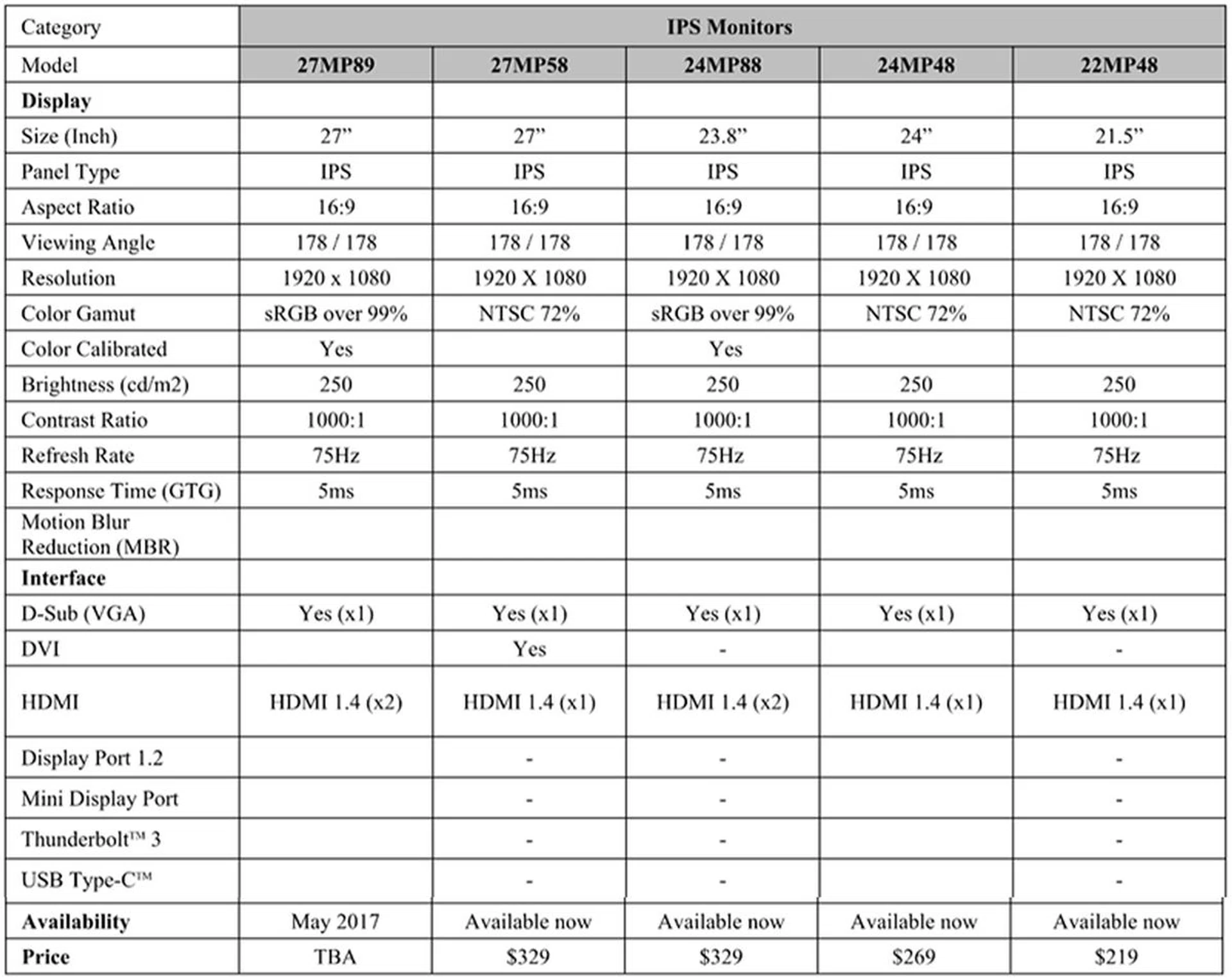 The table below summarizes the key specifications of LG’s latest 1080p monitors: