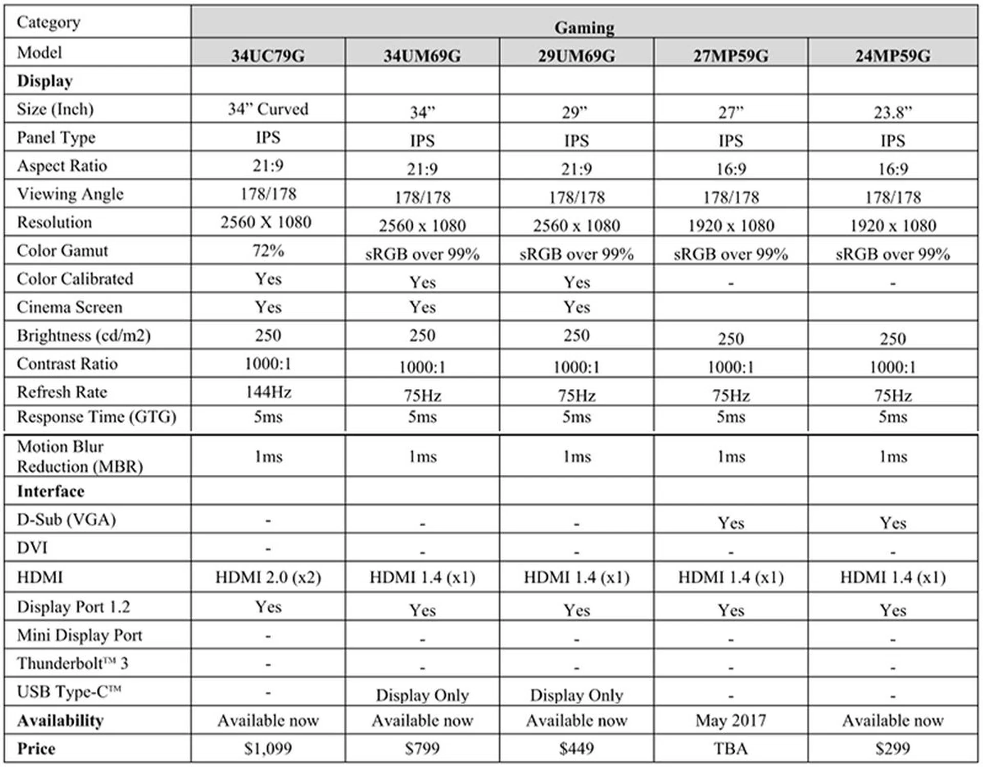 But while these displays appear targeted mainly at serious multi-taskers, they can be used for gaming as well. All of them, save for the 25UM58, support AMD’s FreeSync variable refresh rate technology, which allows for a smoother and more fluid gaming experience.