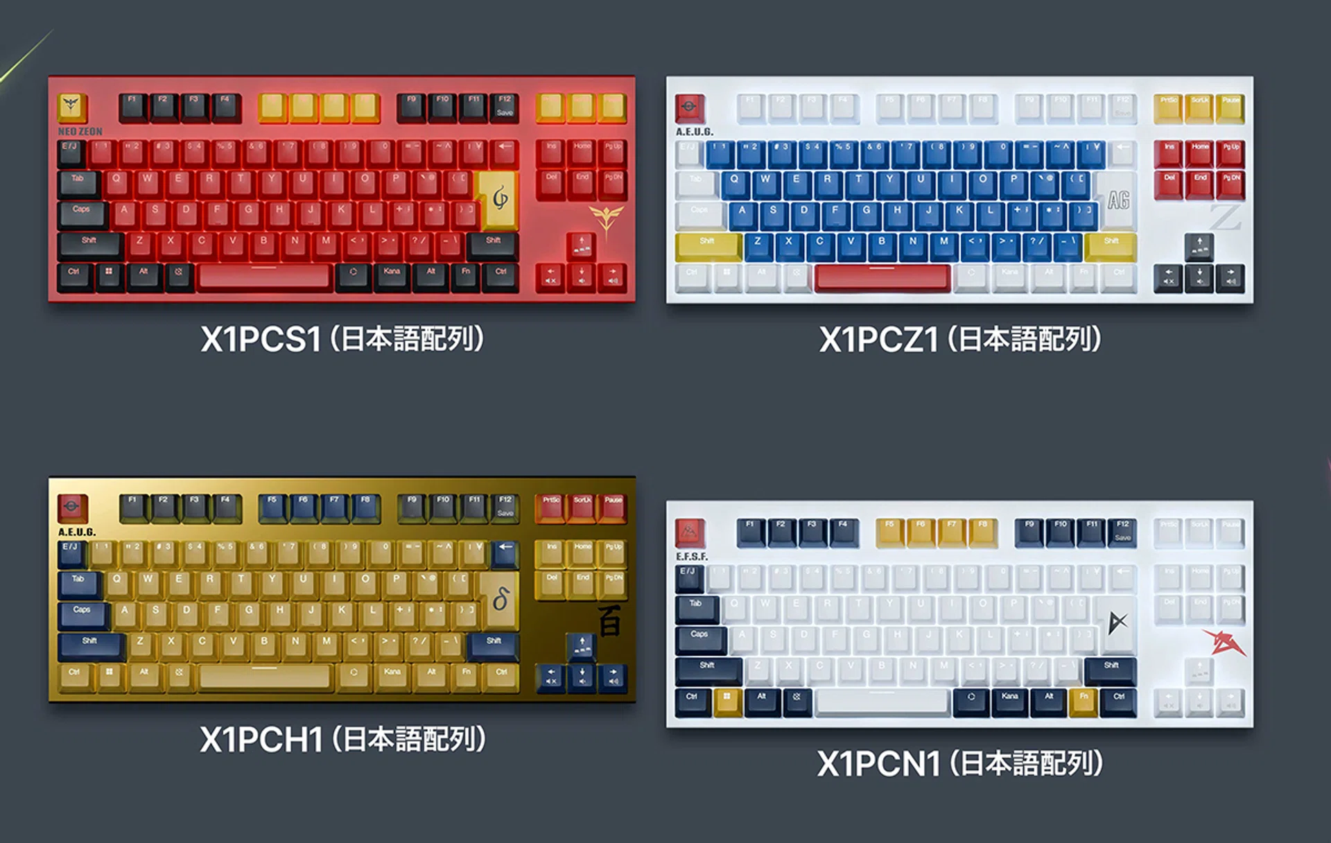 Two of the keyboards are based on the Zeta Gundam and the RX-93 v Gundam.