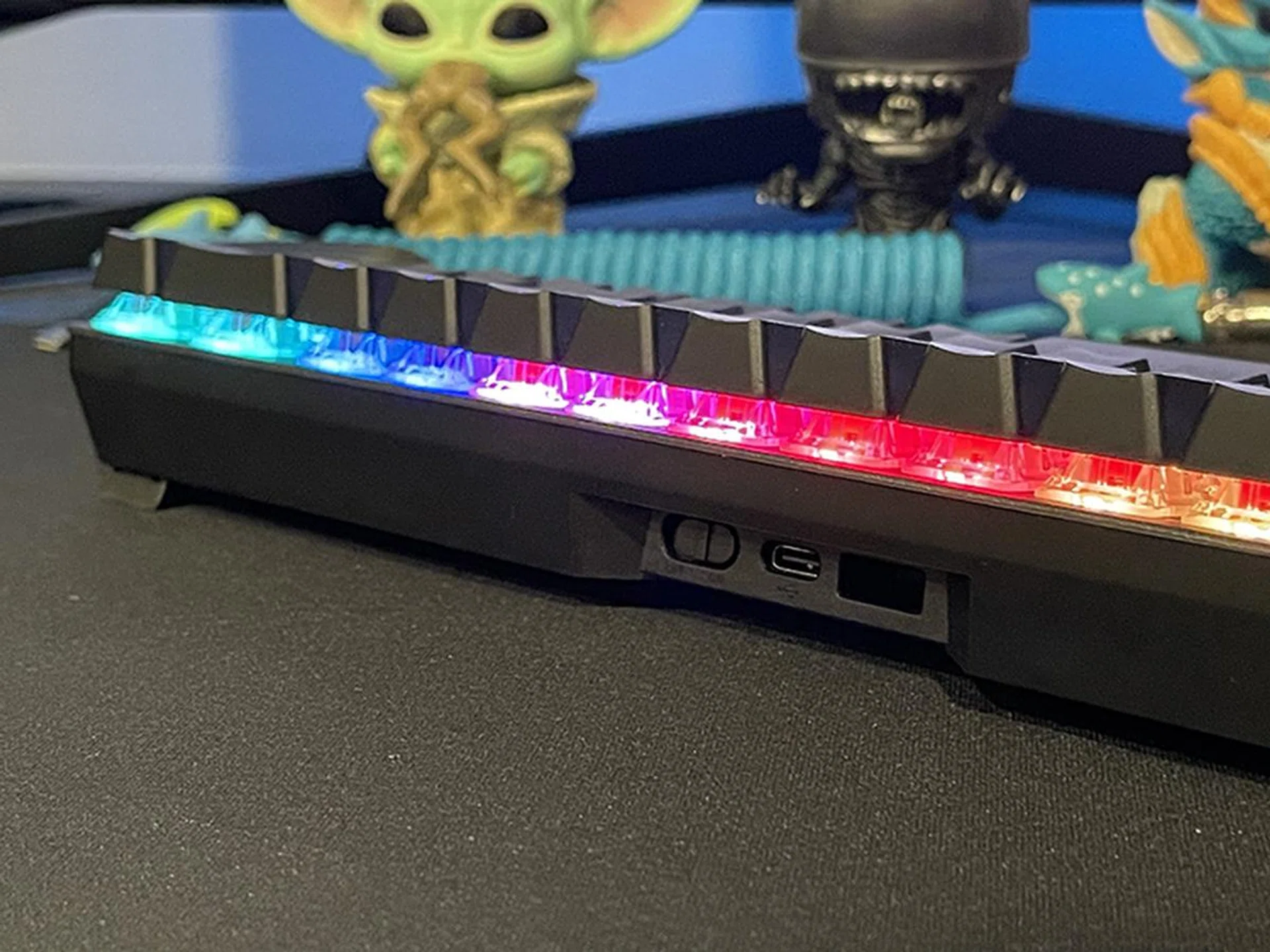 With a dedicated niche for the wireless dongle and a smartly positioned touch panel that can be programmed to suit your needs, this feels like a highly functional package that was designed with careful thought. ASUS may have missed the mark slightly with a non-standard bottom row, but it makes up for that with durable PBT keycaps.