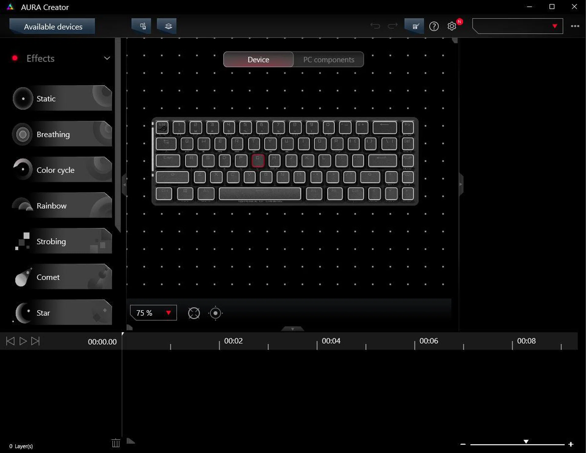 There is support for per-key adjustments in Aura Creator, and the lighting can be synced with other compatible devices in ASUS' Aura Sync ecosystem.