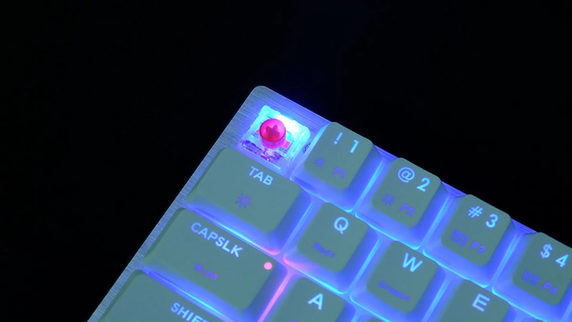 If you're used to regular Cherry MX-style switches, the shorter travel distance is quite noticeable and takes some getting used to. The typing experience is not as satisfying and some of the larger keys that use stabilizers, particularly the space bar, have a hollow-sounding feel to them.