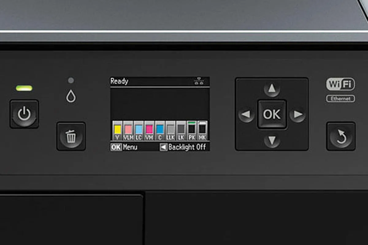 So what makes this 1.5-grand photo printer tick? For one, it uses Epson’s Micro Piezo print head for a top resolution of 5760 x 1440 optimized dpi and boosts a 2-picoliter minimum ink droplet size. Put another way, the printer is capable of squirting every square inch of the paper with tons of super fine ink dots, and does so with great precision. These should result in accurate depiction of even the smallest of details and smooth-looking gradations.