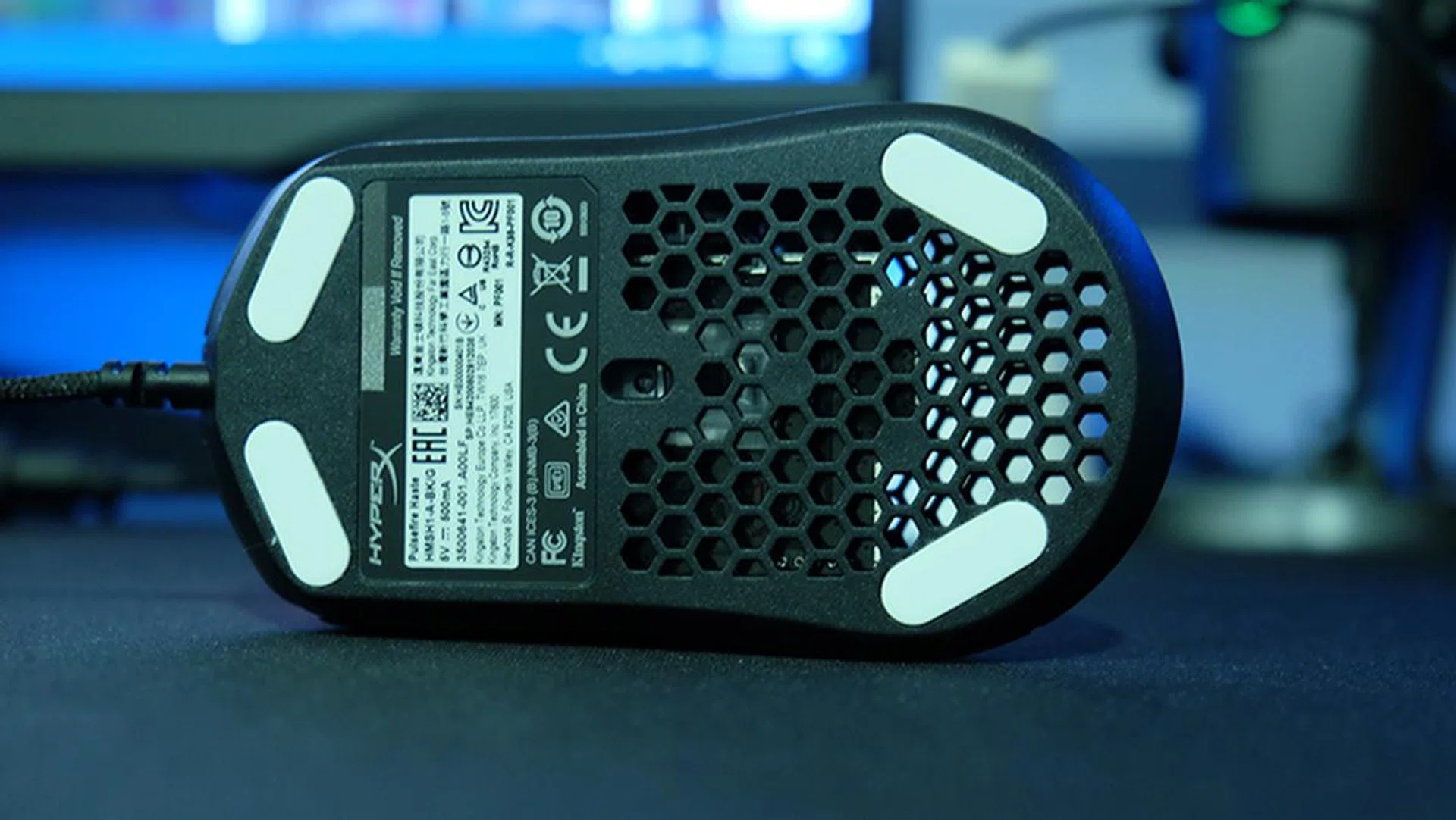 Its honeycomb shell is a familiar sight today, and it's enabled HyperX to bring the weight down to just 59g. The sides where you grip the mouse is solid plastic though, which may help improve comfort for some folks. I personally don't mind having holes in my mouse shell at all, and despite having used many of these types of mice for extended periods of time, I've never found dust build-up to be an issue. The Pulsefire Haste is very competitive in terms of weight and is lighter even than the smaller Razer Viper Mini.