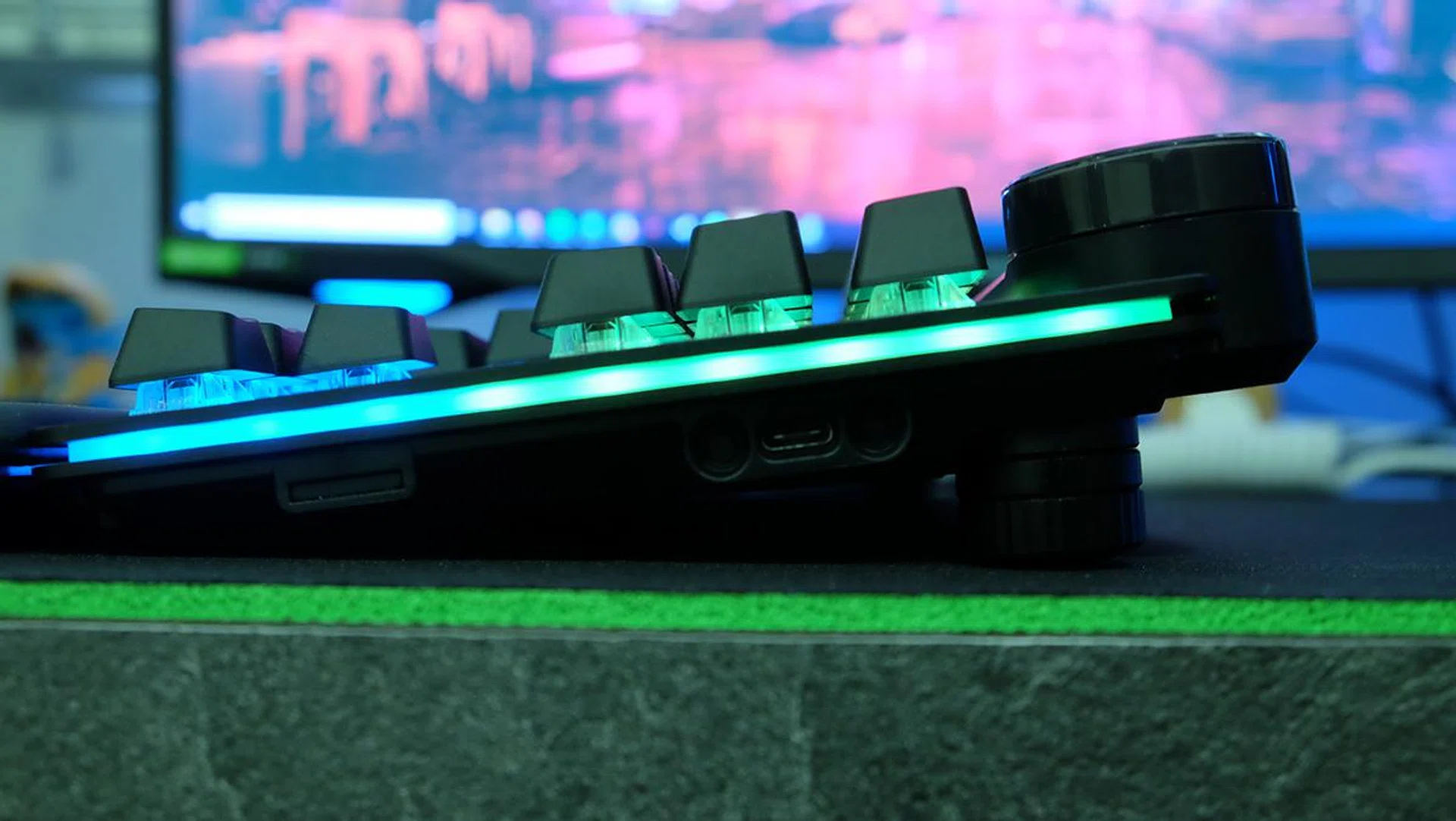 The media dock slides into place effortlessly, and the numpad has helpful magnetic notches to guide it in place. There's barely any wobble or give once they're attached, and every bit of this build oozes premium. The cushy wrist rest is topped by PU leather and snaps on magnetically as well, so you don't have to worry about it not being aligned either.