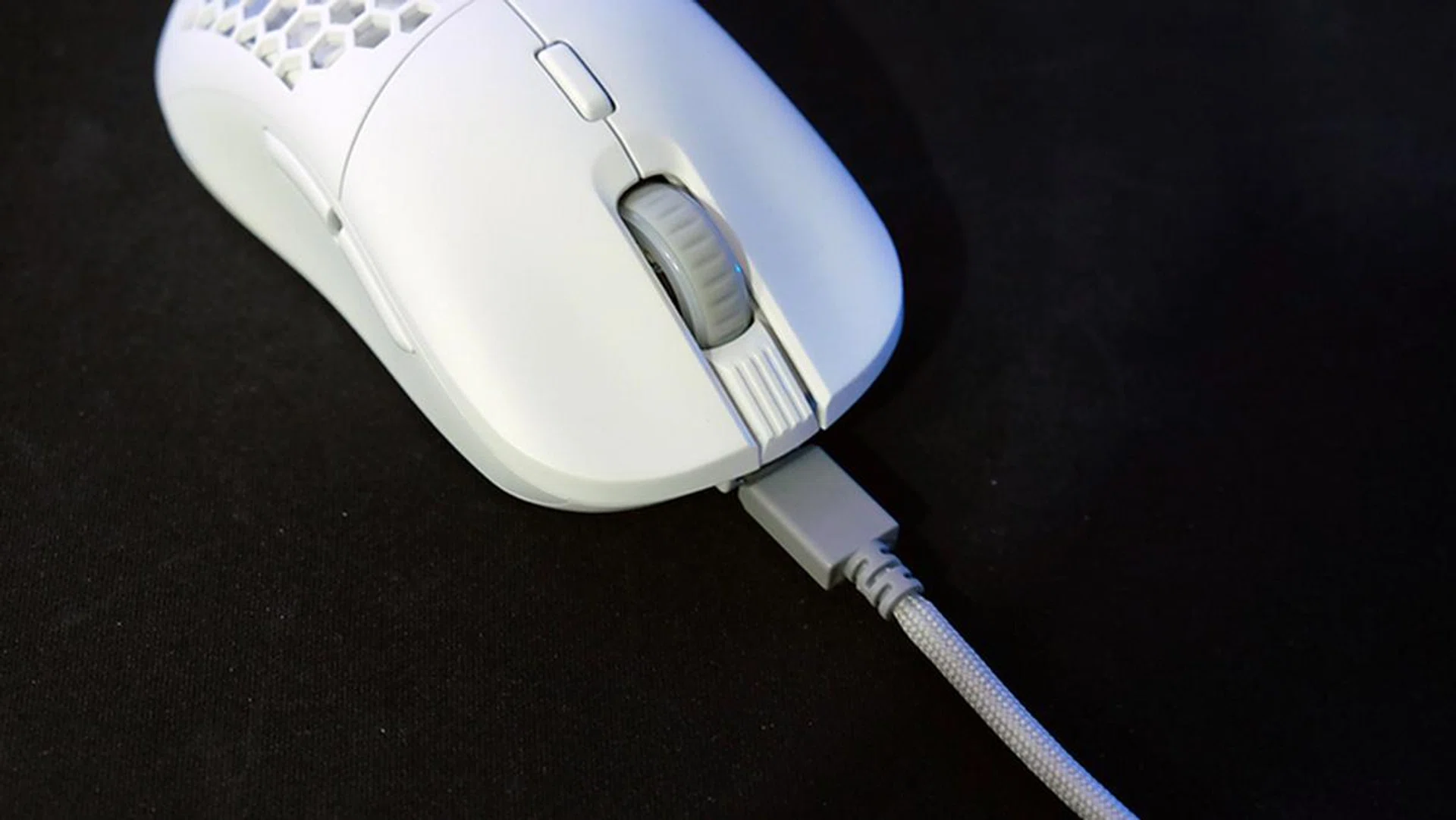 The paracord-style cable plugs into the mouse via a USB-C connector in the front. It's soft and super flexible, with minimal cable drag, and I like that the dated micro-USB port hasn't been used here.