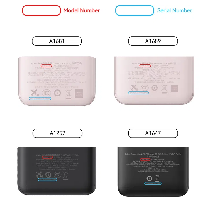 - Check the model number at the bottom or side of your power bank to see if it matches any of the following model numbers (A1257, A1647, A1681, A1689).