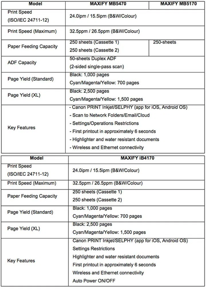 The Canon Maxify MB5470, MB5170, and iB4170 are now available at all Canon authorized dealers, at a price of S$459, S$369, and S$219 respectively.