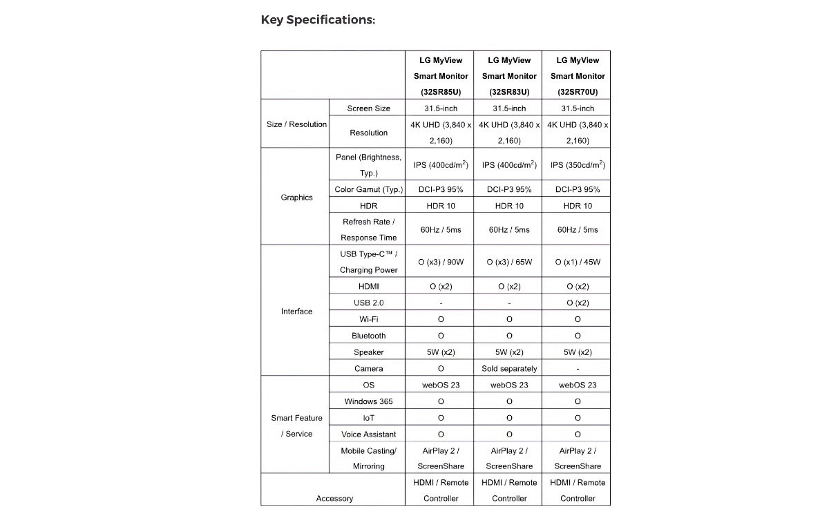 Coming in three models (32SR85U, 32SR70U, and 32SR83U), the MyView smart monitors will enable users to stream movies, series and sports, listen to music, and work remotely without having to connect to a PC. For example, besides access to streaming services like Netflix and Disney+, the monitors also support productivity programs like Microsoft 365 and Google Calendar and come with compatibility for AirPlay 2 and Miracast for wireless screen mirroring.
