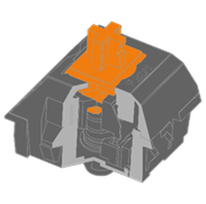 The Razer Orange Switch is tactile yet silent, requiring a force of 45 g to actuate - which looks very similar to Cherry MX Brown switches (also currently available on Razer's Blackwidow keyboard).