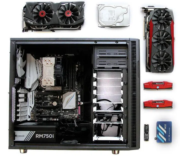 I picked the ASUS Z170 Deluxe because of its high-end features: dual Ethernet ports, a Wi-Fi 802.11ac adapter and support for multiple graphics cards. It has six USB 3.1 ports, including one with the new reversible Type-C connector. In addition, you can install up to six SATA drives (storage or optical drive) and an SSD using the NVM Express interface.