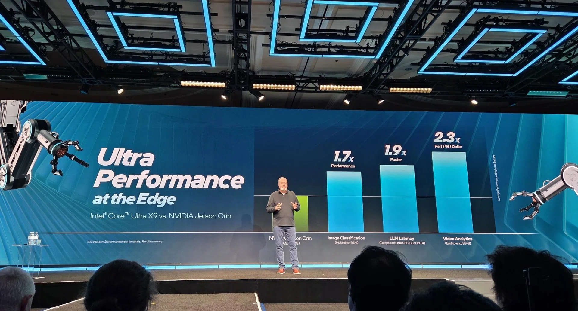 What Intel spent time announcing today is also the Core Ultra 3 series for edge computing, thus reinforcing their focus on rolling this platform of processors at scale. They were most confident in sharing some test scenarios showing how NVIDIA’s Jetson AGX Orin 64GB compares with an Intel Core Ultra X9 388H where team blue comes out ahead in image classification, LLM latency and video analytics workloads. Lastly, the edge-certified version of the Intel Core 3 processors will be available starting in Q2 2026.