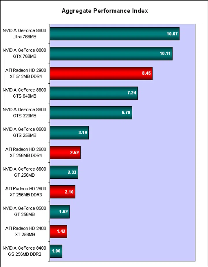 Having seen how the cards perform and rank in the various benchmarks shown, which card is the top performer? Well, since the two generations of cards differ so much in terms of features, especially with the new GeForce 8 and Radeon HD 2000 series having DirectX 10 support and dedicated video processors (for the most part), we decided that it was only relevant to have such an overall performance ranking for the new cards, as these are the ones any new buyer will be looking at now.