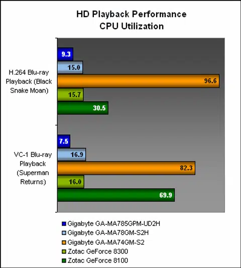 What the AMD 785G is expected to fulfill is the HD playback requirements of HTPC users and as an integrated graphics solution, it continues what the 780G started. The UVD 2.0 onboard lowers the CPU utilization numbers for our Blu-ray playback test even further and cements the 785G as the ideal chipset for this purpose. Short of getting a discrete graphics card, we can't recommend any other integrated solution that comes close to the 785G at the moment.