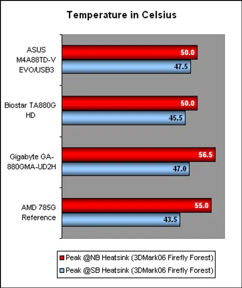 Both the Northbridge and Southbridge heatsinks were passively cooled on these boards and from the temperatures we recorded below, it's clear that passive cooling is more than sufficient, even if the temperatures recorded at load were a bit on the warm side. The lack of elaborate passive heatsinks match the kind of temperatures recorded on this chipset, which is perfectly fine and there's nothing to be concerned about.