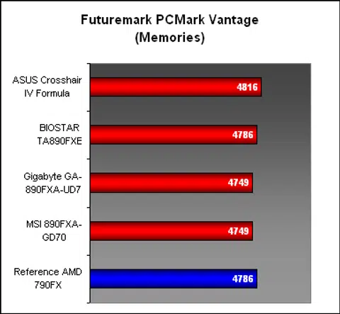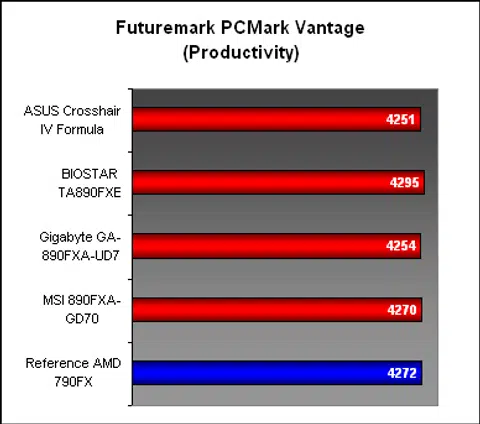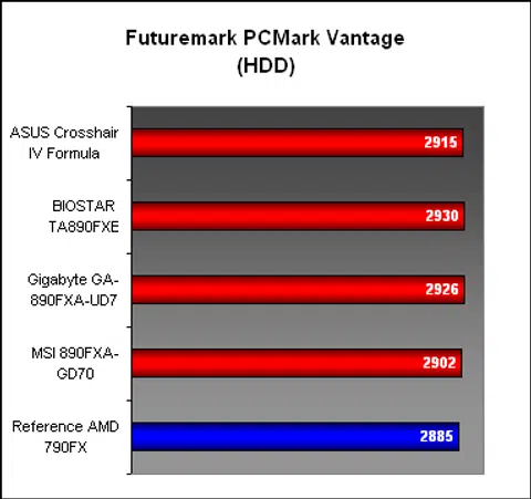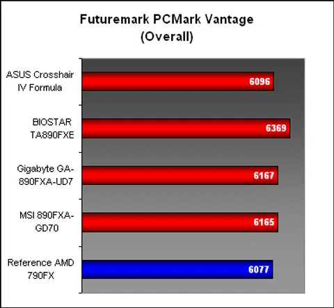 Again, in PCMark Vantage, there wasn't too much to differentiate between the various 890FX boards, or the 790FX for that matter. Except for an Overall score from BIOSTAR that appeared a bit of an outlier, most of the boards performed within an acceptable variable range of scores.