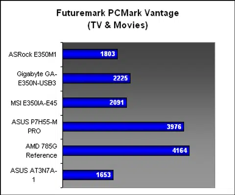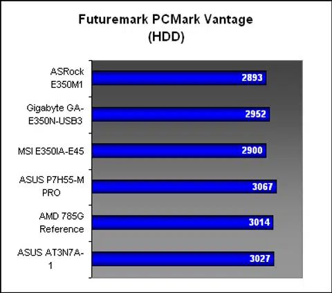 With the Intel H55 and AMD 785G systems having a vastly superior CPU, it's no surprise that the three Brazos boards fall behind. On the plus side, they do fare better than the Atom and NVIDIA Ion combo (ASUS AT3N7A-1). HDD performance was also quite competitive for the Brazos against the other systems.