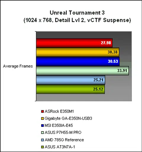 Unreal Tournament 3, another admittedly old game, made a more persuasive case, as the Gigabyte and MSI boards hit an average of 30 frames (though the H55 was still a bit faster here with around 33 frames). In short, we aren't any closer to playing any of the latest games on these Brazos systems, but this may not matter to its intended audience anyway.