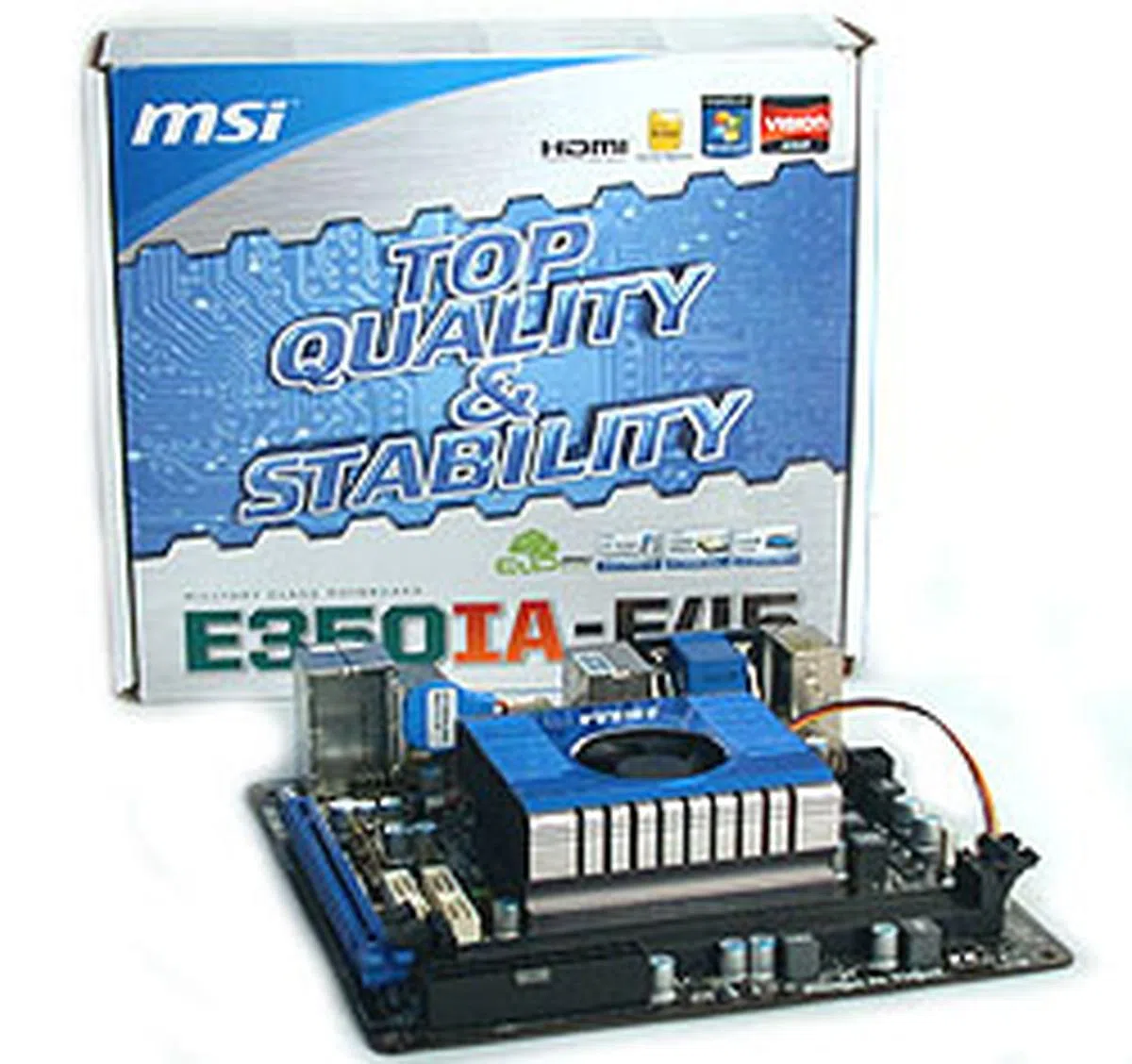 The MSI E350IA-E45 shares quite a lot of similarities with the Gigabyte board before it, from the single heatsink to the 4-pin 12V CPU power connector and USB 3.0 support.
