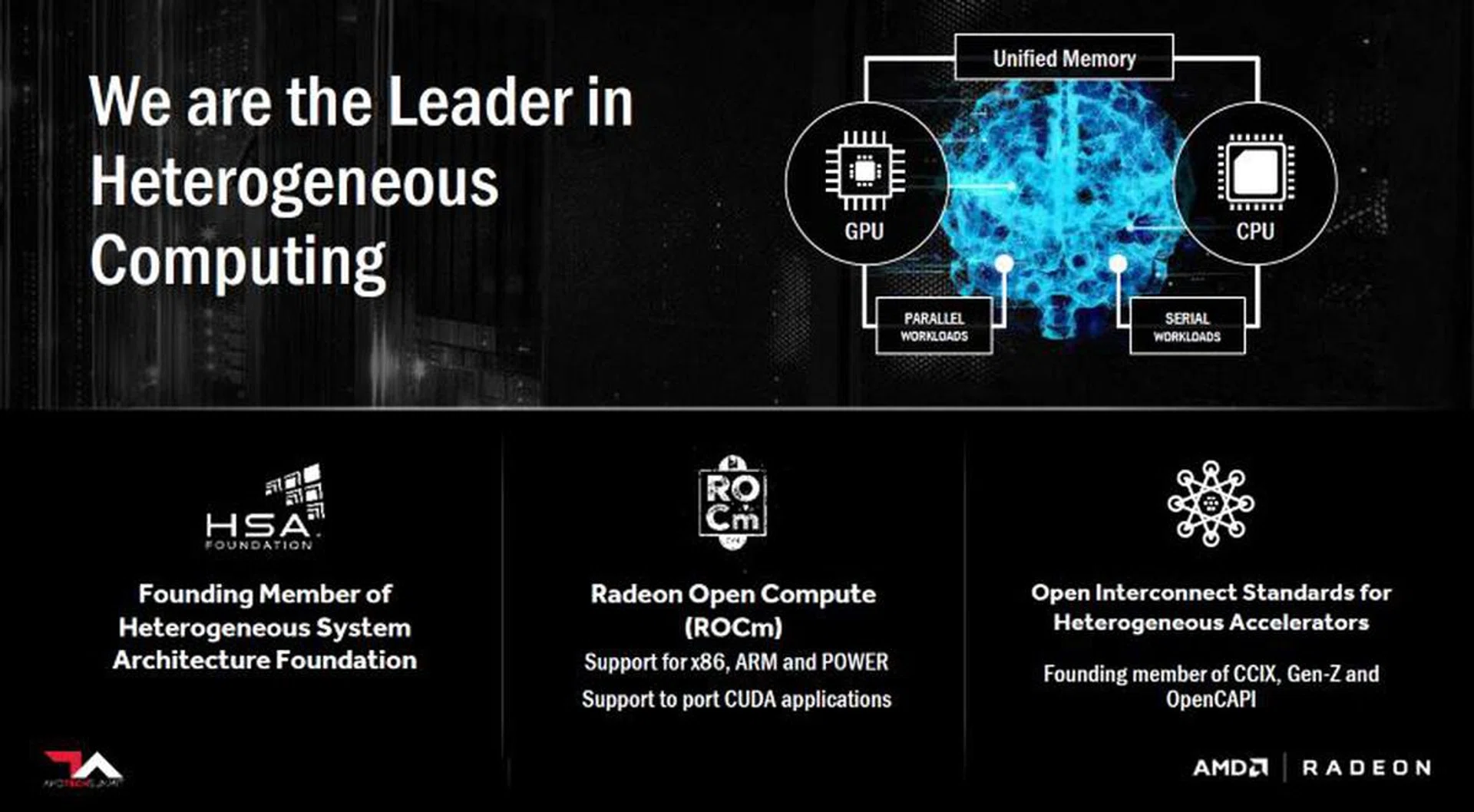 What AMD’s trying do to however, is to advocate for open, heterogenous computing. This means opening up their software libraries and supporting different computing architectures. To this end, AMD’s ROCm platform will not only support all three major chip architectures: x86, ARM and Power, but will also support ports of NVIDIA CUDA applications.