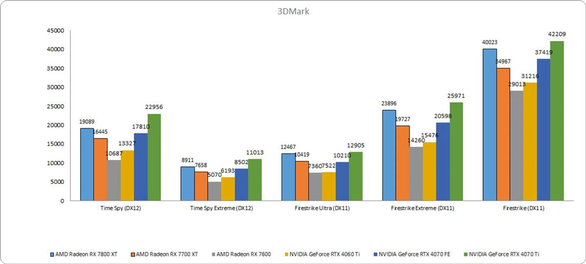 In the 1440p Fire Strike Extreme test, the Radeon RX 7800 XT was nearly 20% faster than the RX 7700 XT, even though it was just 10% more expensive. The Radeon RX 7800 XT also beat the NVIDIA GeForce 4070 by 15%, while the Radeon RX 7700 XT edged ahead of the GeForce RTX 4060 Ti by a good 24%.