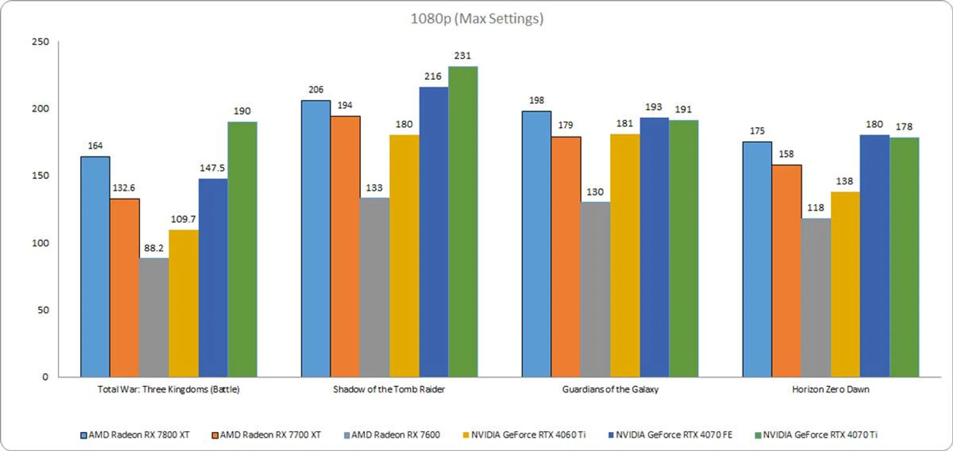Both the Radeon RX 7700 XT and RX 7800 XT have no problems with games at 1080p, even at maximum settings.