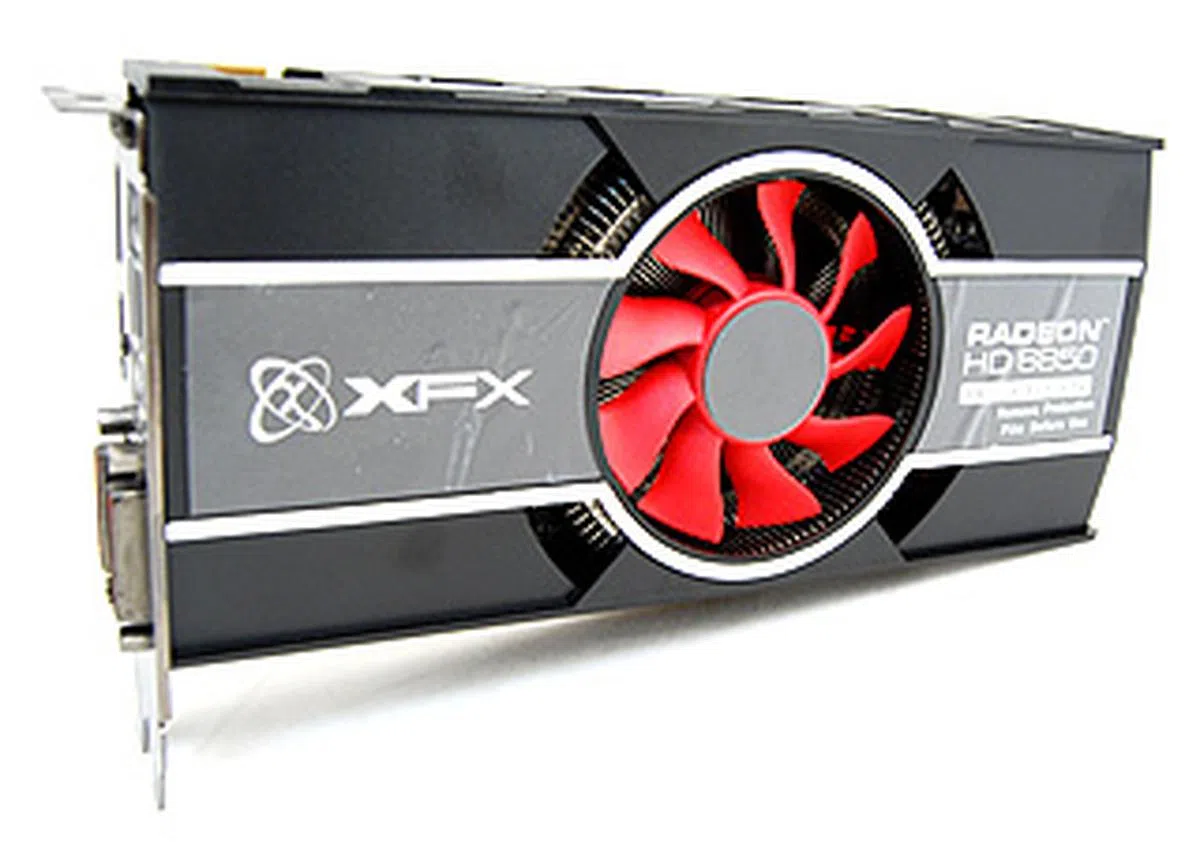 The XFX Radeon HD 6850 Black Edition has a radial heatsink design, which is strikingly similar to a reference card.