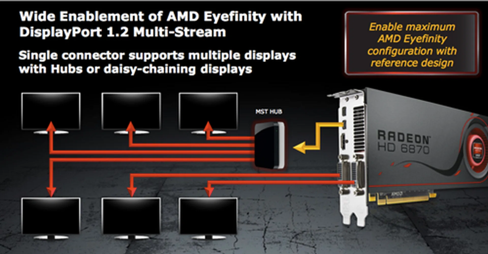 ATI’s Evergreen cards brought multi-display gaming to the mainstream audience with its ability to power up to three monitors using only a single graphics card. With Northern Islands, AMD is naturally expanding the prowess of EyeFinity.