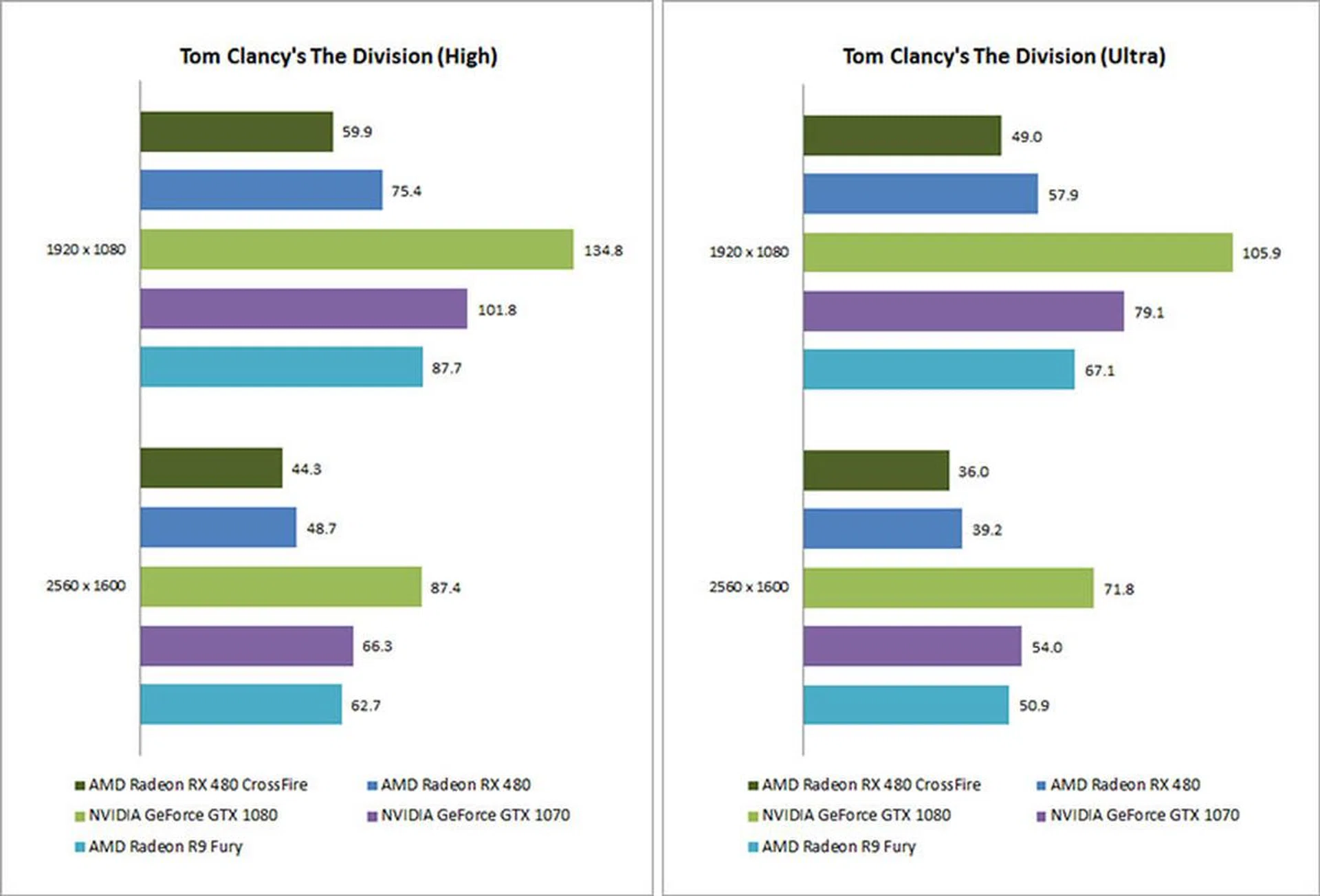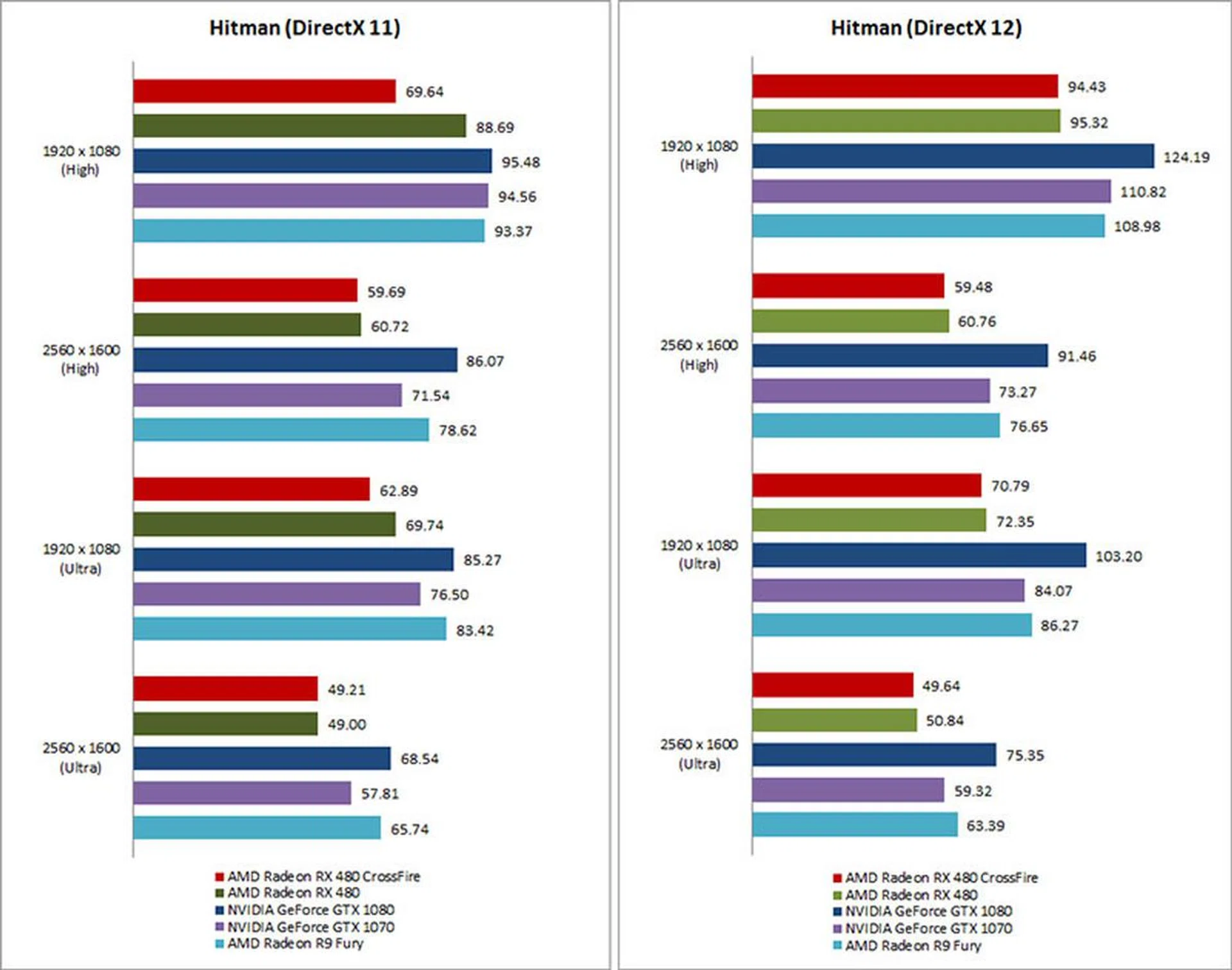 Unfortunately, a look at the figures for The Division and Hitman shows why a single powerful card is often favored over multi-GPU setups. Both games displayed negative scaling, where performance was worse than a single Radeon RX 480. The drop was greatest at the less demanding resolutions and settings, and the best case scenario only saw roughly equivalent performance between a single card and the CrossFire setup.