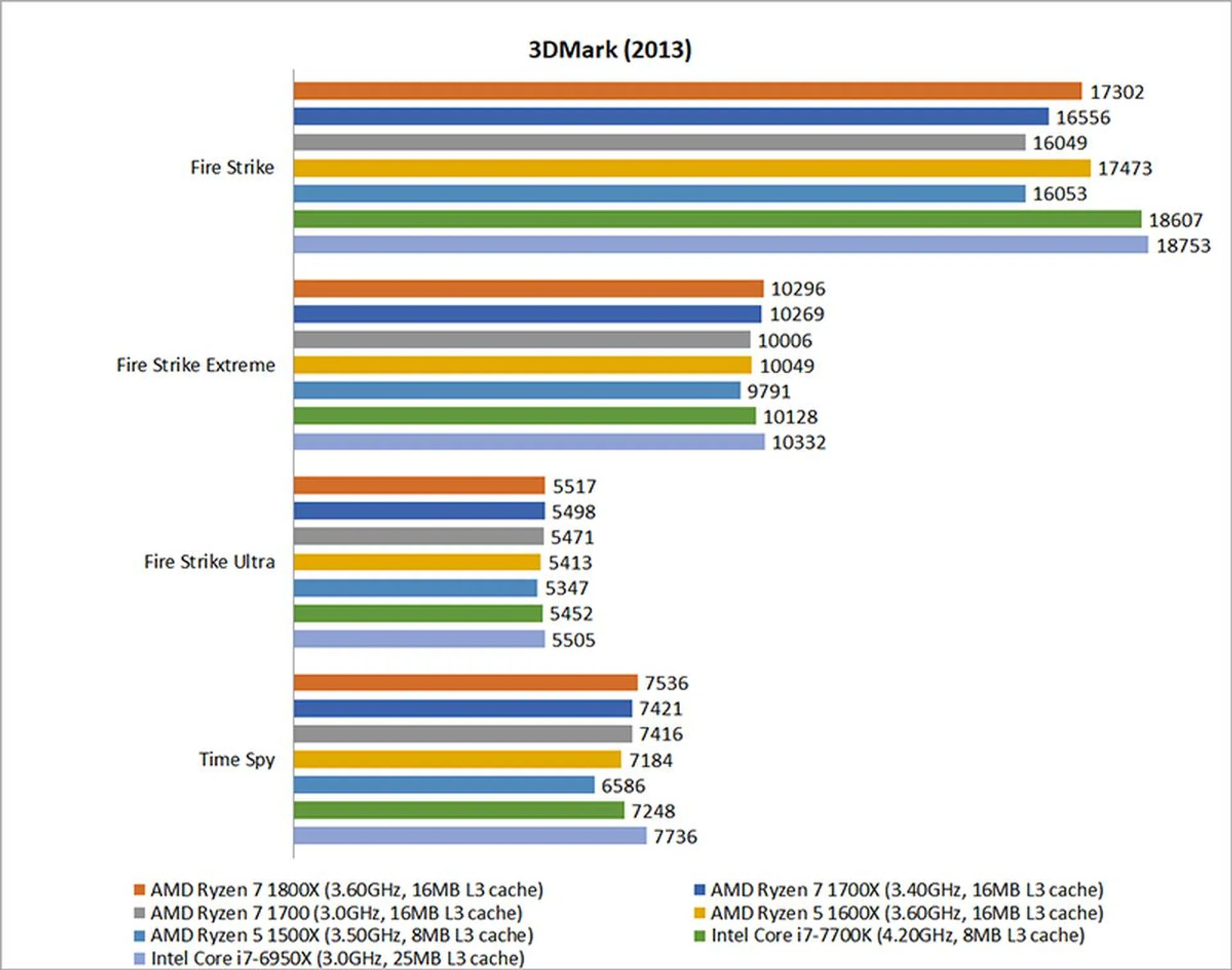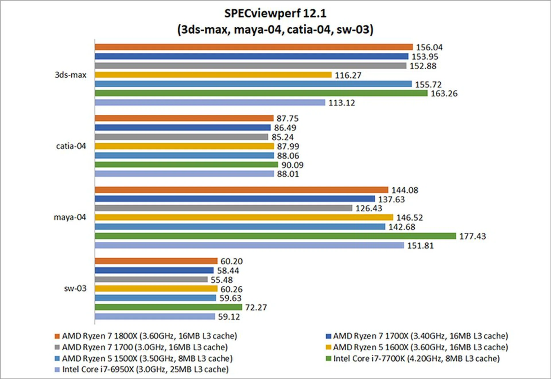 Intel Core i7-6950X | Intel Core i7-7700K | Ryzen 7 1800X | Ryzen71700X | Ryzen71700 | Ryzen 5 1600X | Ryzen 5 1500X | |