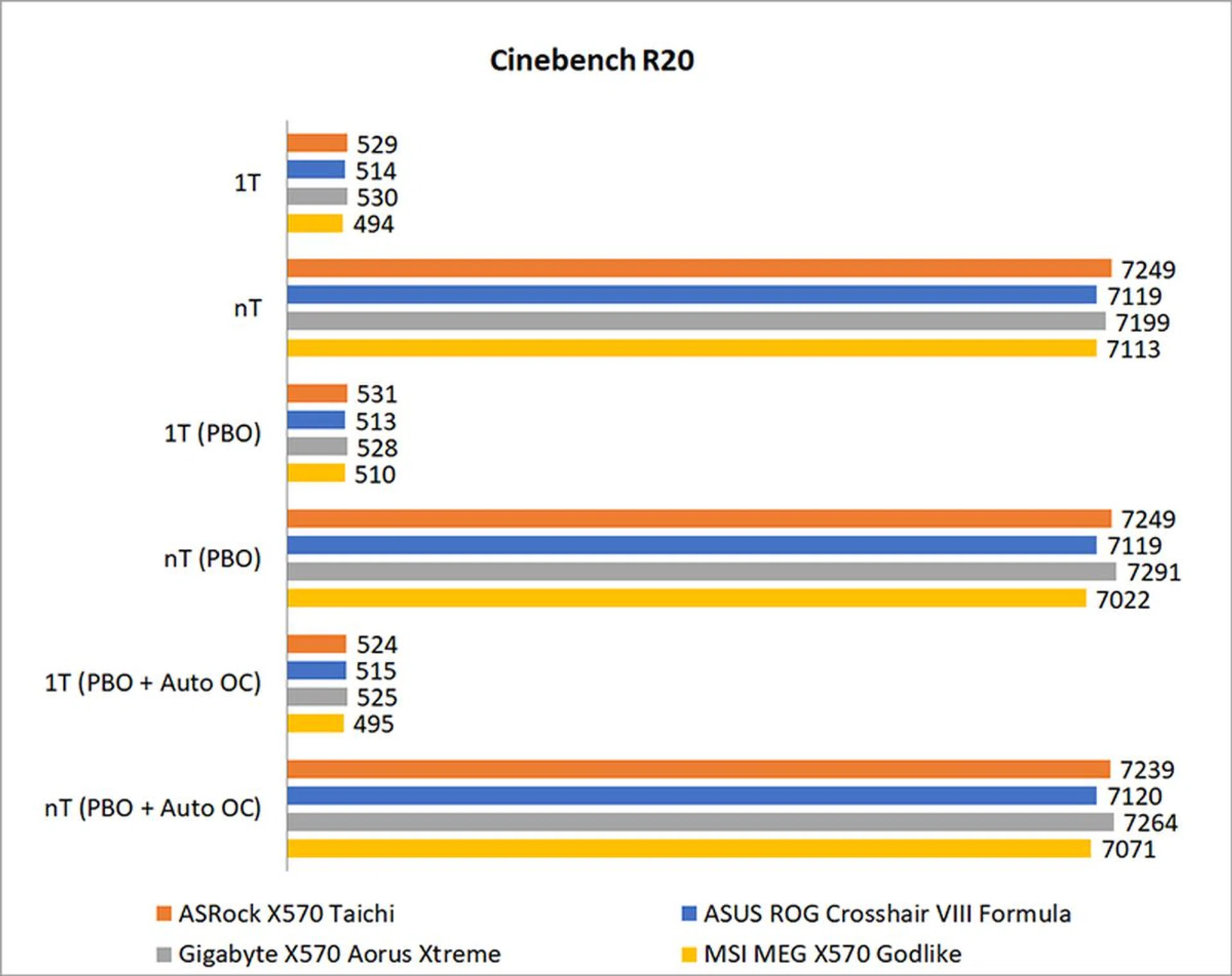 Auto OC | ASRock X570 Taichi | ASUS ROG Crosshair VIII Formula | Gigabyte X570 Aorus Xtreme | MSI MEG X570 Godlike |