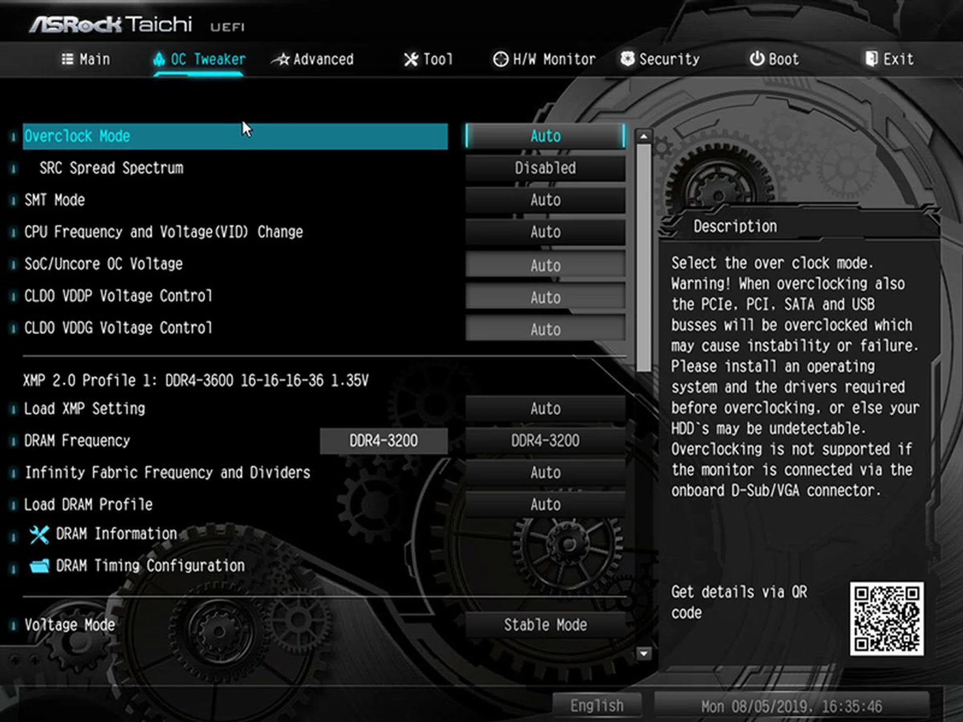 The Taichi's BIOS is reasonably easy to navigate, with clear headers that show you where to find the setting you're looking for. At the time of writing, ASRock is also one of the first to have ready a BIOS update that fixes the issues Ryzen 3000 has with running Destiny 2.