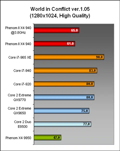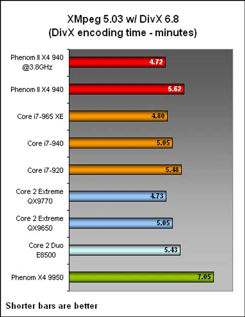 Obviously, this is still some way from the demonstrated 6GHz from AMD but then again, one can hit that only with liquid nitrogen cooling. Compared to the original Phenom, the new CPU definitely has much more headroom for overclocking. But does the higher clock speed help the Phenom II against Intel's quad-cores? We ran some benchmarks and the results are detailed after the jump.