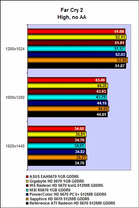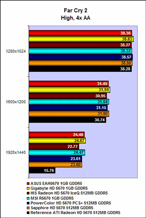 It was the same story on Far Cry 2, but we did notice the HIS and Sapphire cards lagging behind slightly when we ran the game at an intensive 1920 x 1440 with 4x anti-aliasing enabled. But with all the cards reporting below 30fps in performance, this point is inconsequential, really.