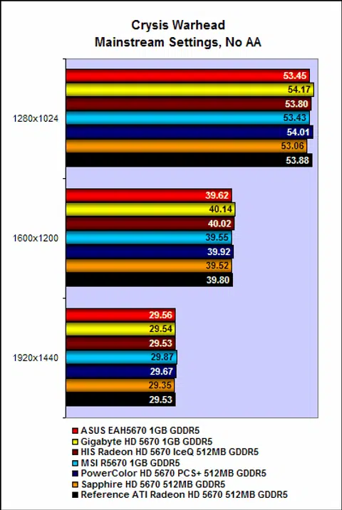 It was the same thing on Crysis Warhead, with all the cards managing very similar frame rates. There was simply no separating them.