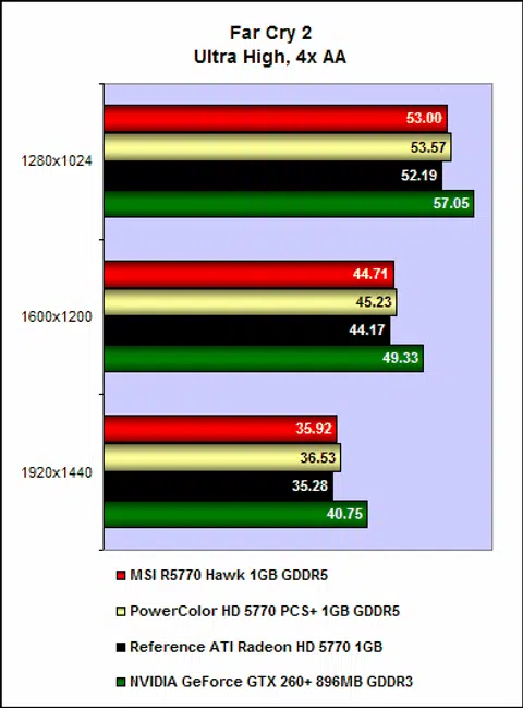 In factory stock form, the PowerColor HD 5770 PCS+ edges ahead thanks to its slightly higher memory clock speeds and its lower operating temperatures. However, the MSI R5770 Hawk was able to negate those advantages thanks to its better overclocking abilities, which is in no small part thanks to the awesome bundled Afterburner software.