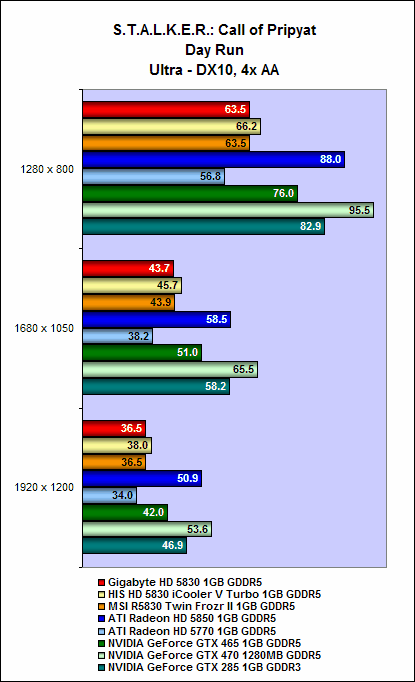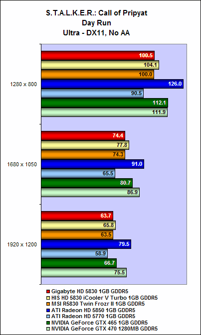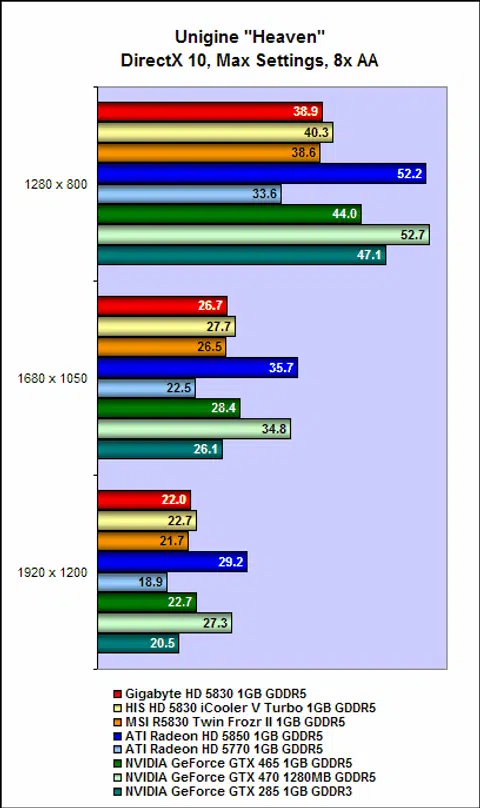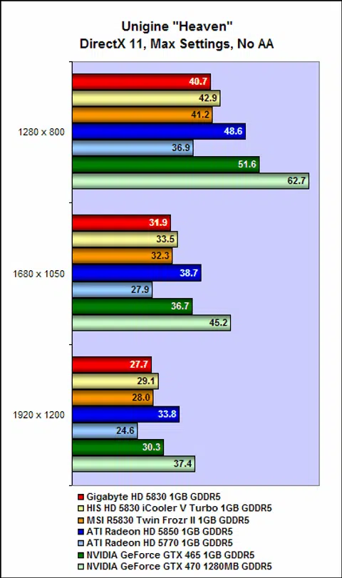 Looking at the Radeon HD 5830 as a whole, its scores are right smack in the middle between the Radeon HD 5850 and HD 5770. It was competitive against its rival from the green camp too, handily outscoring the GeForce GTX 465.