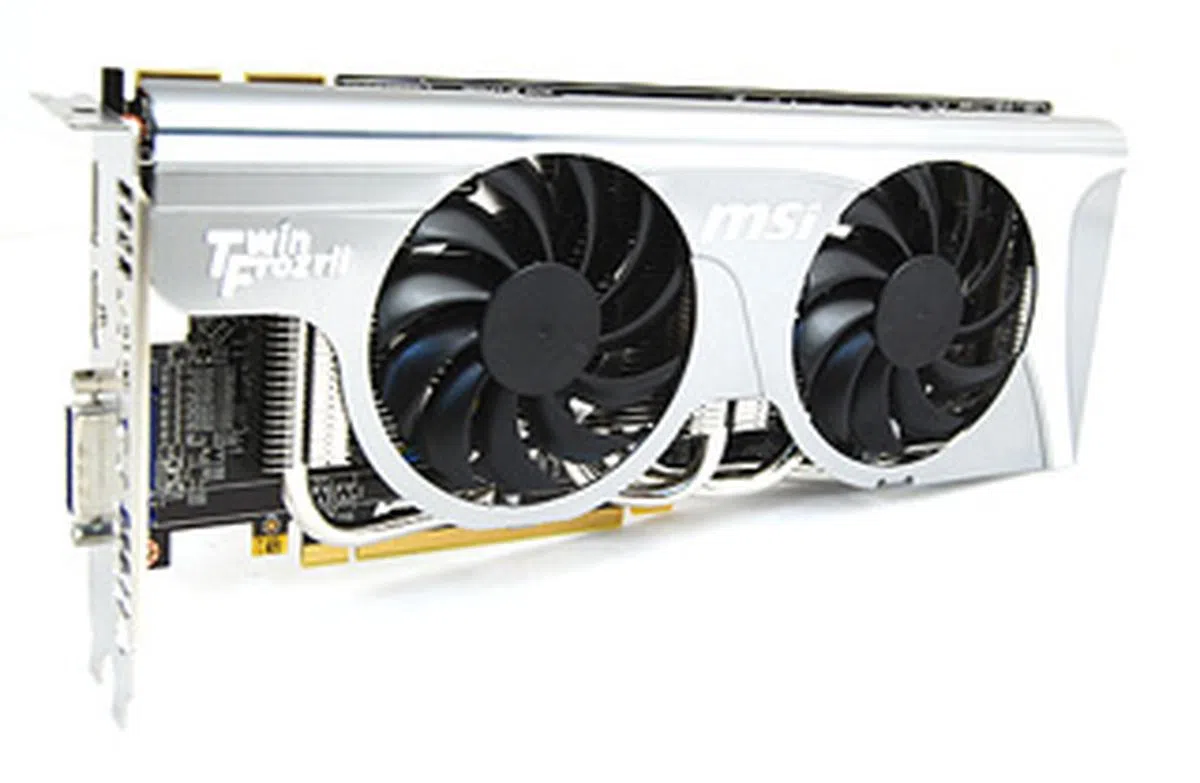 The MSI card uses the distinctive Twin Frozr II cooler, which comes in its standard silver/chrome finishing.