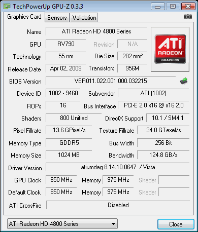 - ATI Radeon 4870 512MB (Catalyst 9.1)