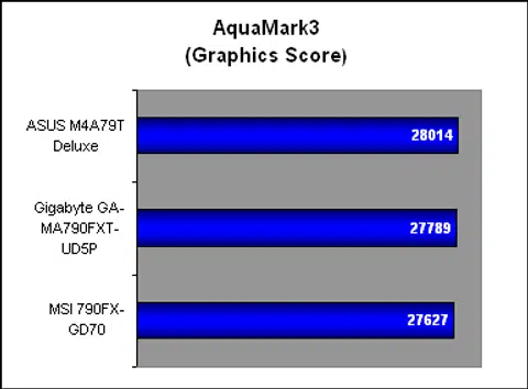 The AquaMark3 results were in line with our findings so far, with the boards scoring similarly. Of course, with the GPU the main determinant of graphics performance nowadays, this benchmark is effectively showing that the motherboards are working properly rather than a gauge of performance.