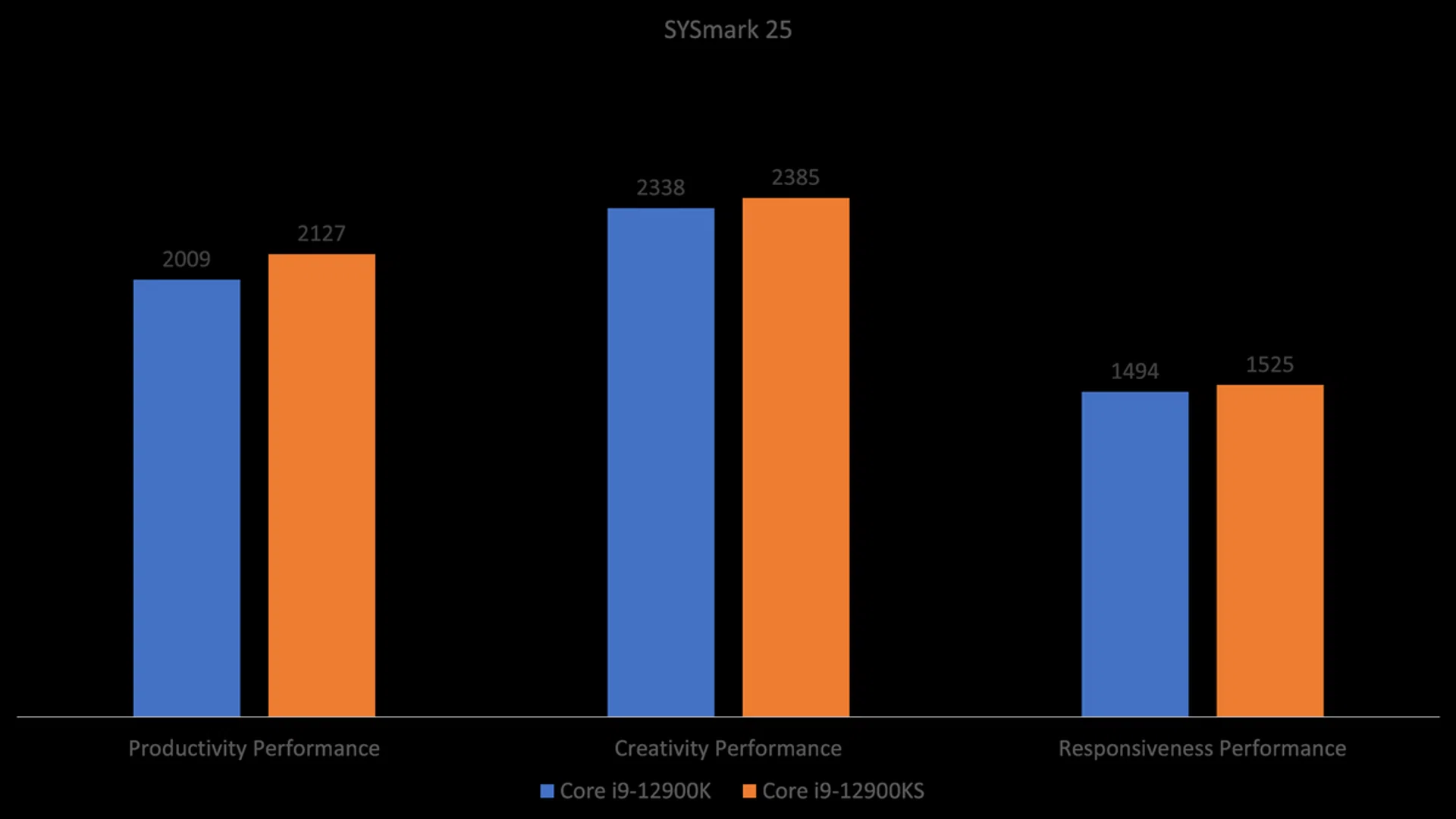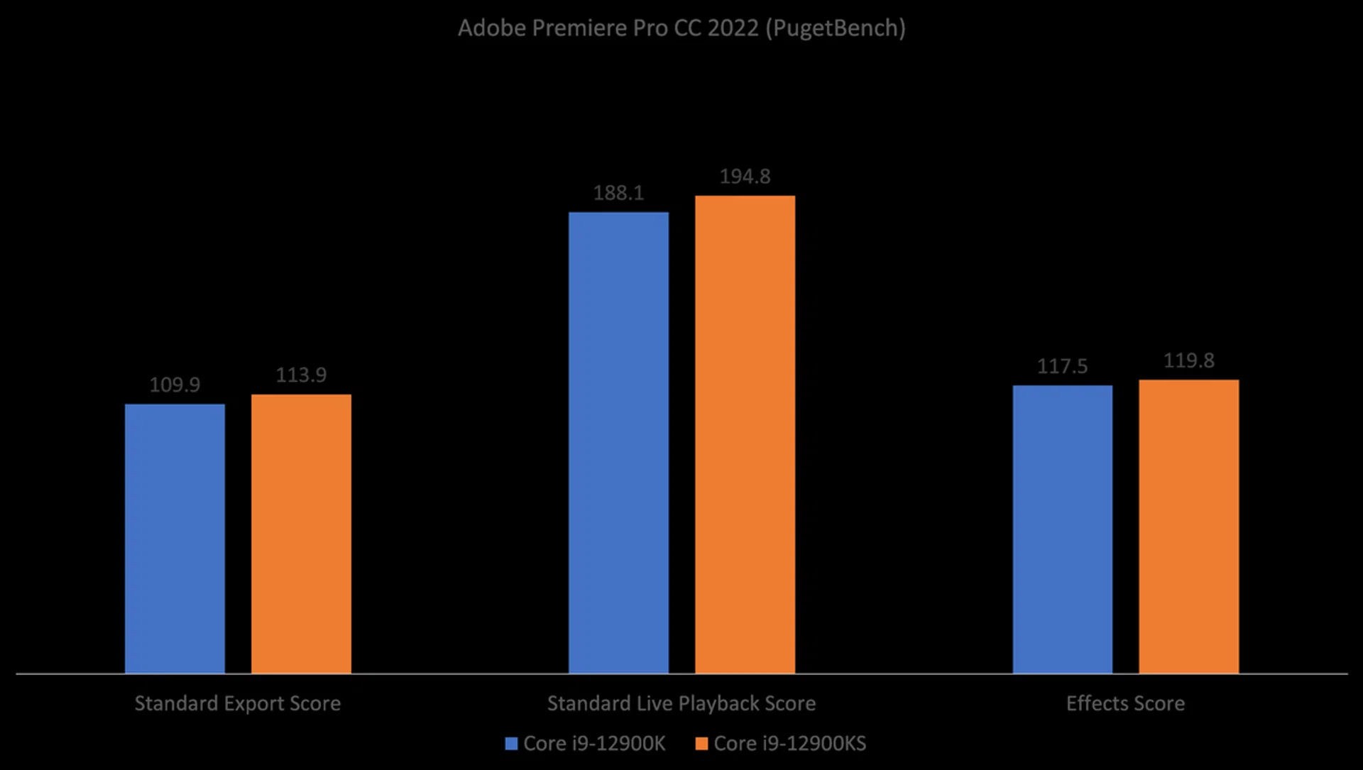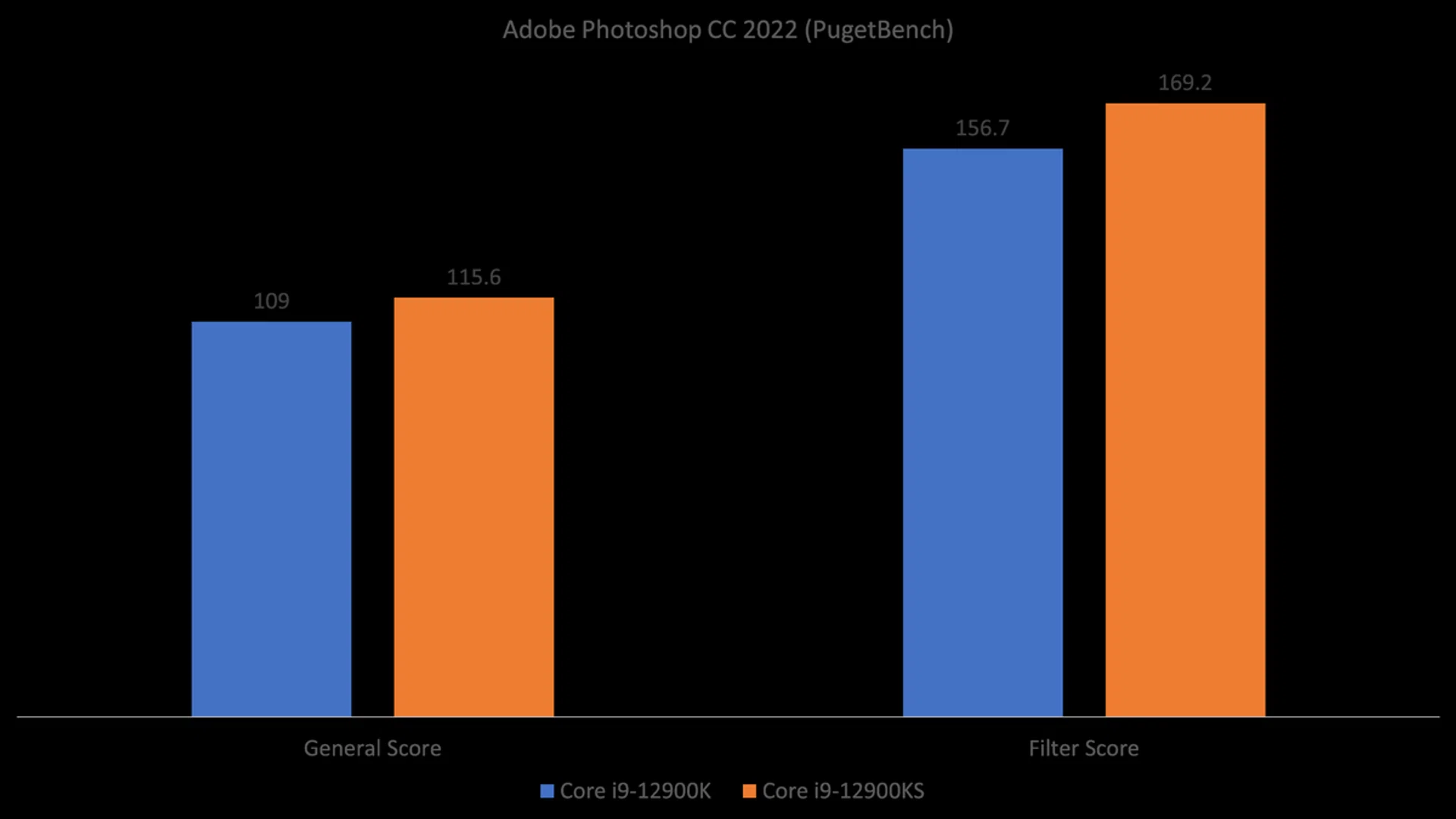 Again, we are seeing similar performance results for productivity and content creations. The i9-12900KS clearly, and unsurprisingly, leads the slightly older i9-12900K but not by much. If you already own the i9-12900K, there’s really no point in upgrading to the more power-hungry i9-12900KS just to save on a couple of seconds for your video renderings.