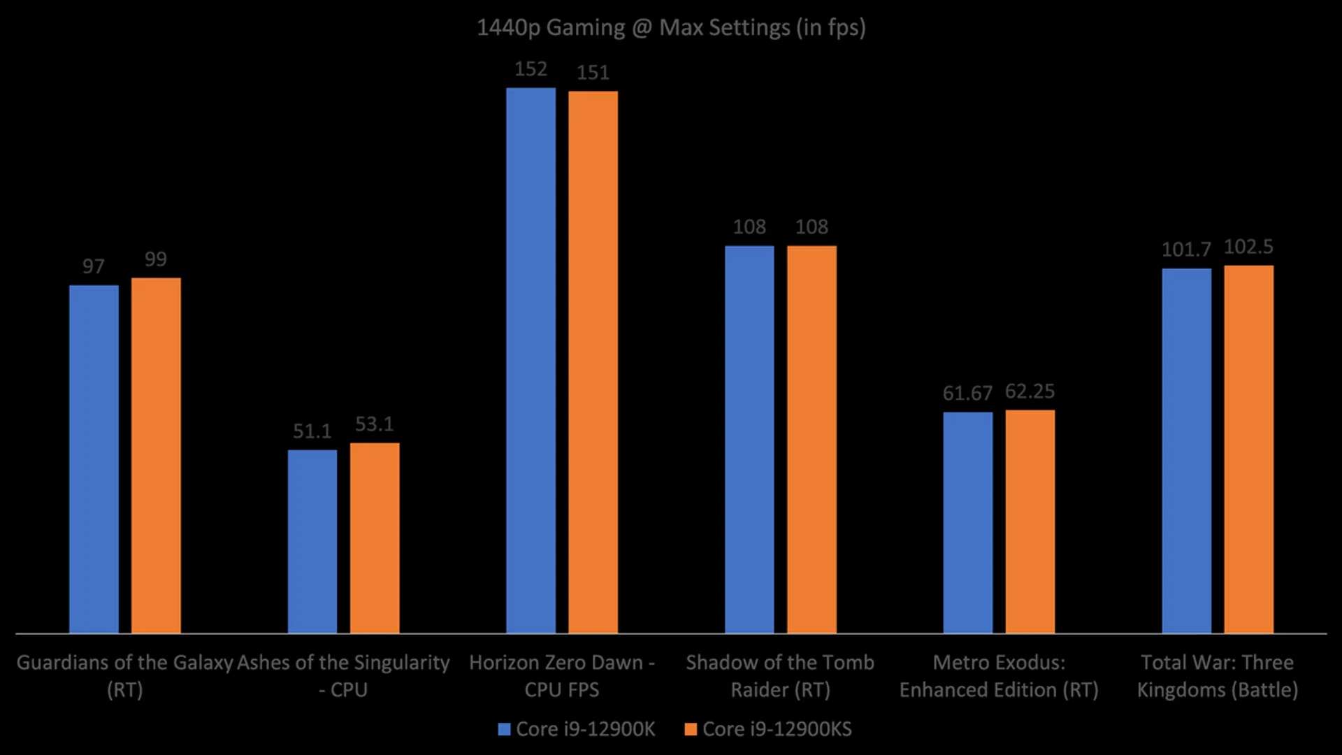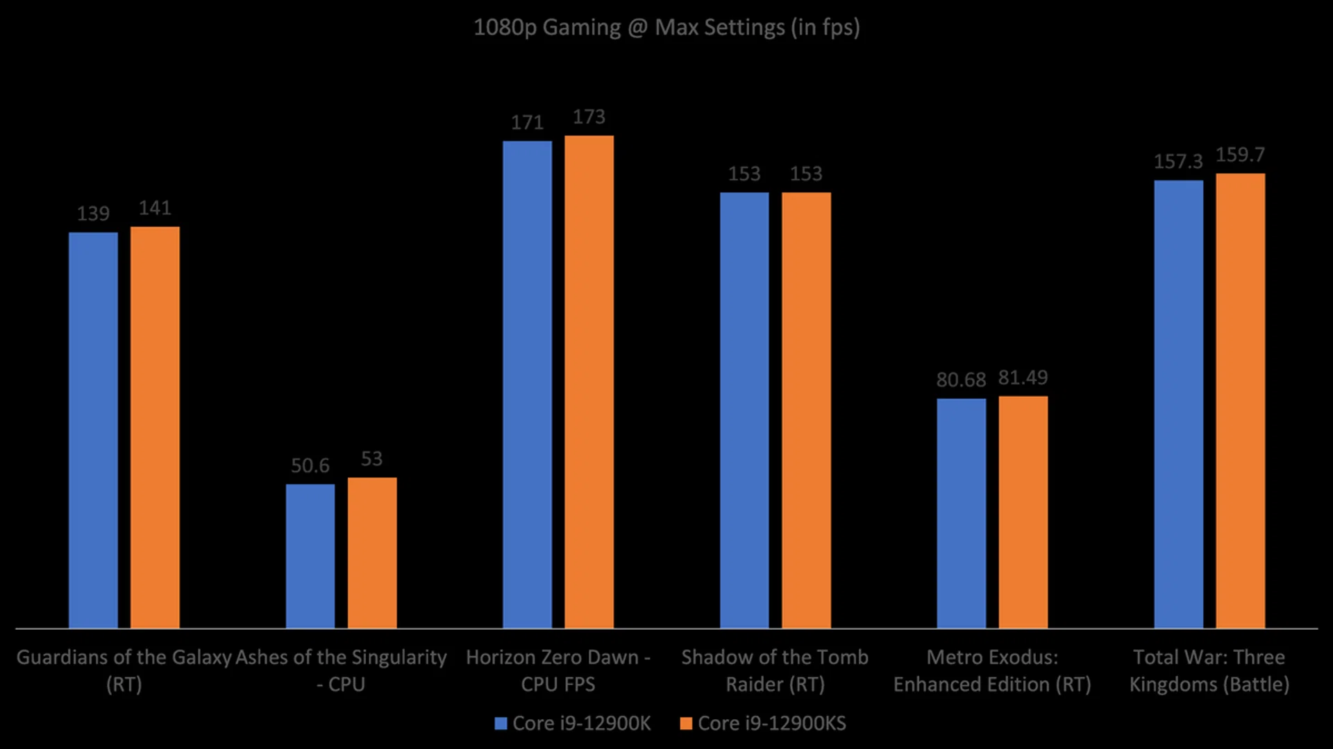 In short, the results here pretty much speak for itself. Both the i9-12900K and i9-12900KS are absolute monster performers when it comes to gaming. Unsurprisingly, the new i9-12900KS outran the original CPU. What’s also unsurprising however, is that the results aren’t that all impressive for the i9-12900KS – where performance gains in games are just about 5-6 per cent at best. Basically, the increased clock frequency of the new CPU doesn’t amount to much here.