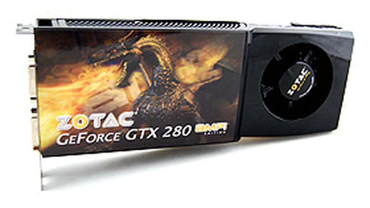 You'll be forgiven if you did not think much about the Zotac GTX 280 AMP! Edition. Apart from the fire-breathing dragon emblazoned on the dual-slot reference cooler, you'll find nothing else that differentiates it from a reference GeForce GTX 280 from NVIDIA . However, underneath its uninteresting facade lies a monster, because the Zotac GTX 280 AMP! Edition is by far the most aggressively overclocked GeForce GTX 280 card we could find. Its core clock speed have been upped from the reference 602MHz to 700MHz; whereas shader clock speed have also been increased from 1296MHz to 1400MHz; and memory, from 2214MHz DDR to 2300MHz DDR. With such substantial increases, we expect the Zotac GTX 280 AMP! Edition to be a real bruiser.