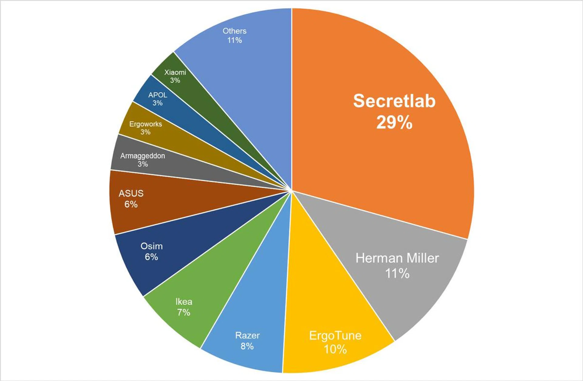 Secretlab continues to be the crowd favourite, winning the Best Computer Chair Brand award again with a healthy lead of 29% of the total votes. While there is a big dip from last year's 47%, Secretlab isn't the only one. ErgoTune has also dropped from second place (24% in 2022) to third with 10% of votes; Herman Miller takes over the two-spot with 11%. If you look at this year's chart, you’ll see many new players (Armaggeddon, ASUS, OSIM, etc.), and existing brands such as Ikea and Razer getting a larger piece of the pie.